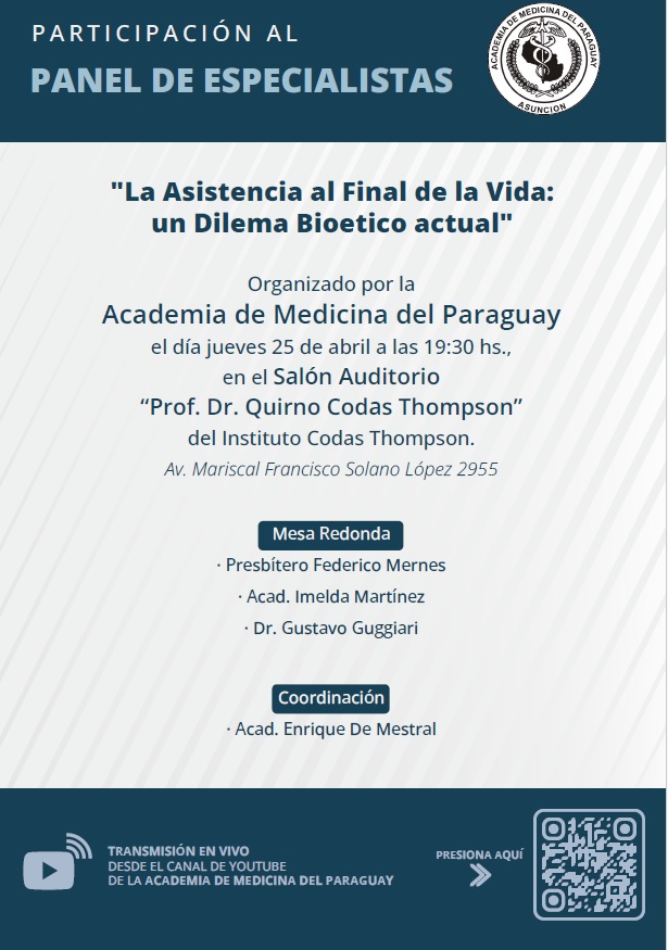 El Consejo Directivo de la Academia de Medicina del Paraguay, le invita a participar del ciclo de conferencia de la Academia "Medicina-Arte-Cultura: a propósito de un Grande - Prof Dr. JUAN MAX BOETTNER", a realizarse el jueves 27 de junio del corriente año a las 19:30hs en el Salón Auditorio “Prof. Dr. Quirno Codas Thompson” del Instituto Codas Thompson